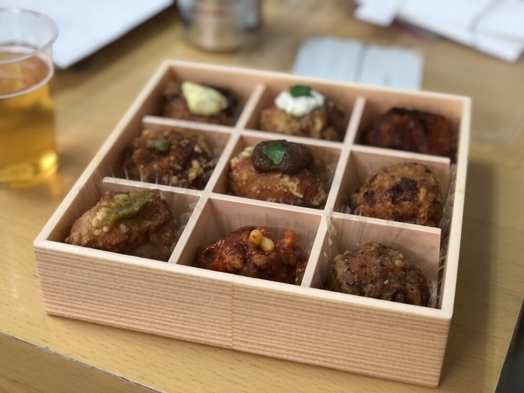 9種類の異なる味付けの唐揚げを楽しめ、肉もしっとりジューシーで、美味しい唐揚げでした、、、!
